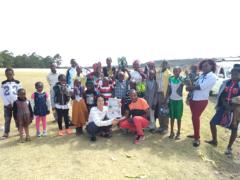 区民の方々の協力を得て集めたシューズを、「いつか一緒に走りましょう」というメッセージを込めてケニア共和国の子どもたちに送りました。