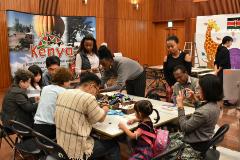 ケニア紅茶・コーヒー、アクセサリー、ケニア民族布などのケニア物産展やケニア民族布を使ったクルミボタンをつくるワークショップやイラストワークショップ、ホストタウン事業紹介パネル展、サファリガイドとケニア人による講演、ケニア太鼓の演奏などの様々な催しを行い、多くの来場者で賑わいました。