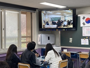 - 学校の施設や学生たちの勉強する姿は日韓両国ともよく似ていた。ただし、体育授業の際に男女別々に授業を行う点と生徒たちが直接給食の配膳を行うことは韓国と大きく異なる点である。