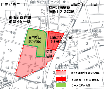 目黒区では、自由が丘駅前の交通環境や防災性の向上を図るため、「東京における都市計画道路の整備方針(第四次事業化計画)」(平成28年3月)で優先整備路線に選定されている補助127号線の整備と一体的に進める沿道周辺のまちづくりを推進するため、自由が丘駅前西及び北地区(以下「西北地区といいます。」)において、地区内権利者を中心とした街づくり検討会の事務局として、自由が丘のまちづくり会社である「都市再生推進法人 株式会社ジェイ・スピリット」と共に、まちづくり活動を支援してきました。