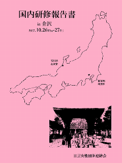 目黒女性団体連絡会では、女性団体のリーダー育成のため年に1回、国内研修を行っています。2017年は金沢で研修を行い、構成団体である「女性学習グループ連絡会」「ウィメンズめぐろ」「新日本婦人の会目黒支部」から5名が参加しました。研修の内容は、参加者の作成した報告書をご覧ください。