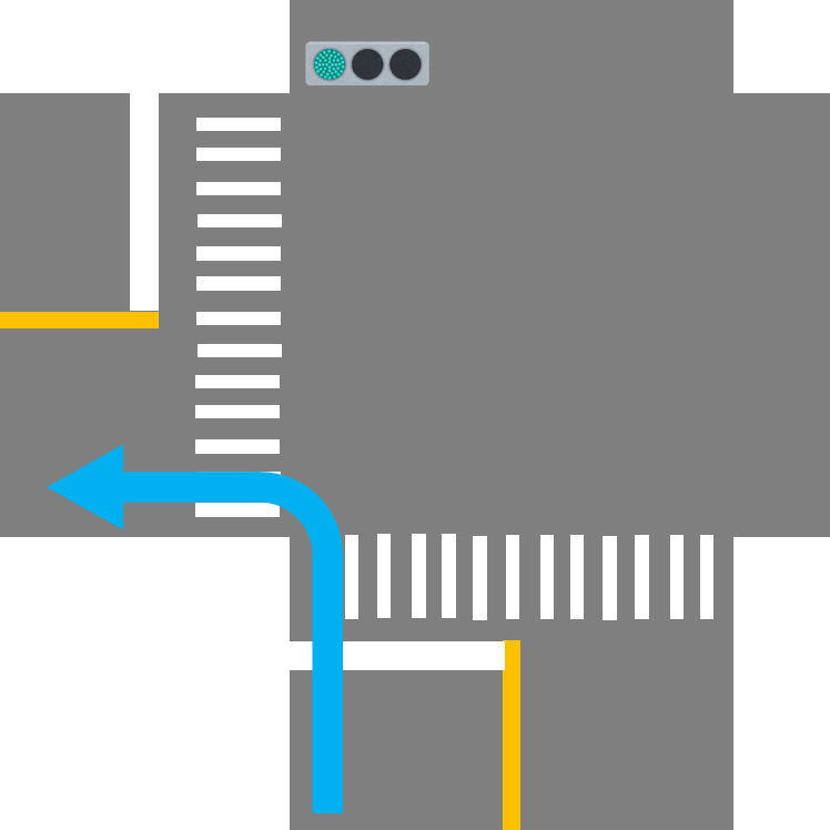 - 左折は、歩行者がいないか注意し、左のウィンカーを点滅させてゆっくり左折しましょう。