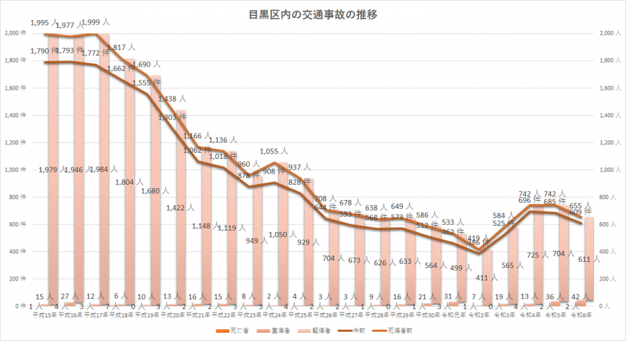 トップページ > 防災・安全 > 交通安全 > 交通事故 > 目黒区内の交通事故の状況