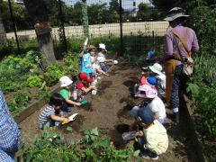毎月第1土曜日の10時から10時30分まで、3歳から小学4年生までの子供とその保護者を対象に、「みどりの親子ボランティア」を実施しています。公園内で、水やりや簡単な除草作業・種まき、ゴミ拾いなどのボランティアを親子で行い公園のみどりに親しんだり、ボランティアの気持ちを育みます。