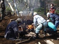 萌芽更新で切ったクヌギやコナラは炭焼きやシイタケ栽培のほだ木に使います。駒場野公園では公園で活動するボランティアの方が中心になって平成11年から炭焼きを行っています。ドラム缶にクヌギやコナラ、竹などを詰めて火を入れ炭をつくり、できた炭は水の浄化などに利用します。毎年3月頃に行っています。