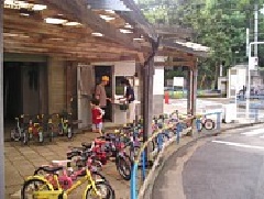 管理棟で名前と年齢を申込書に記入すると、自転車を借りることができます。