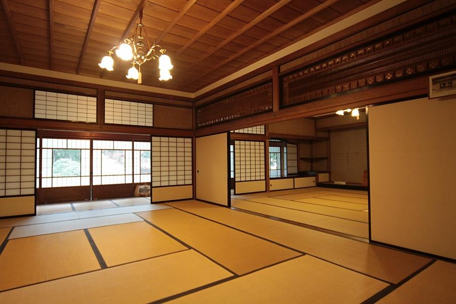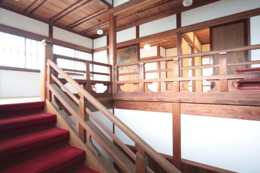 和館は高さのある2階建てで、吹き抜けの階段室を備え、階段高欄(手摺)には、伝統的な社寺の意匠を用います。また階段廊下と御書斎の境には、水墨で松の描かれた杉戸があります。