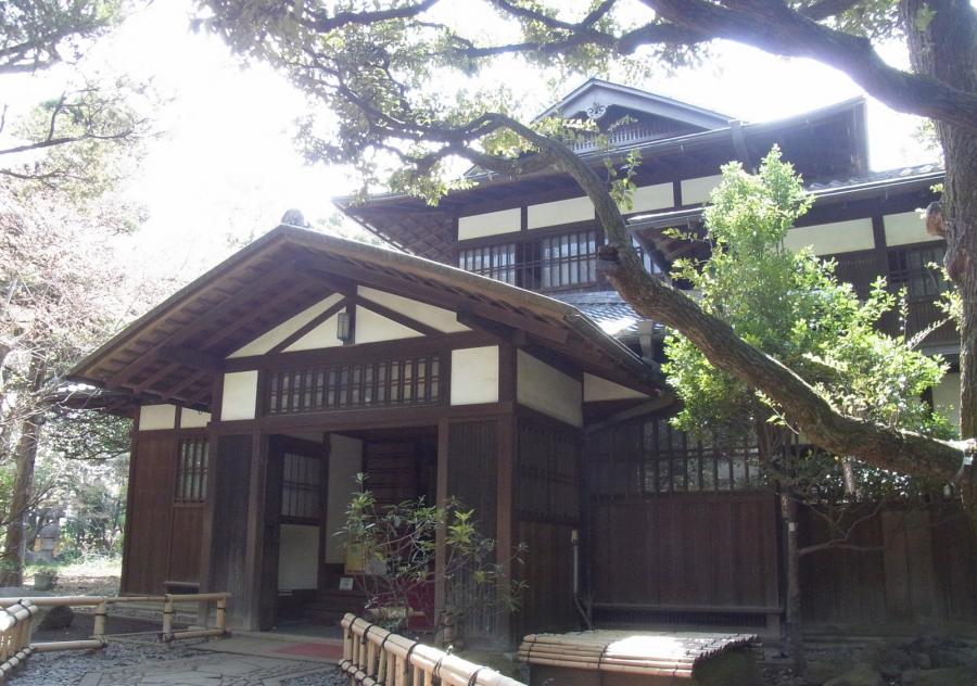 外国からの賓客に日本文化を伝えるために、昭和5年(1930)に竣工した木造2階建の近代和風建築で、迎賓のほか、前田家の四季折々の行事にも利用されました。外観は、玄関側の北面は破風屋根が重なる重厚な意匠とし、庭側の南面は京都の銀閣寺を思わせる姿となっています。内部は畳敷きの大廊下や広い続き間のほか茶室も設けられています。設計は、佐々木岩次郎で、茶室は三代目木村清兵衛によるものです。隣接する洋館とは渡廊下でつながっています。戦後は一時期、連合国軍GHQ司令官の住宅などに使用されましたが、内外ともに創建時の状態を良く留めています。