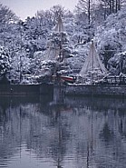 太鼓橋でつながる池の中の小島には、昔から地域の方々の手で管理されてきた厳島神社があり、神社手前の松の木の冬の風物詩「雪つり」とともに、地域住民や利用者に親しまれています。