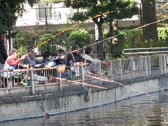 清水池公園で釣りをする人たち