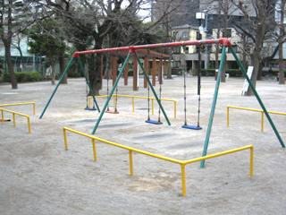 春になると、公園の脇の桜並木がとてもきれいです。ブランコなどの遊具があるので、地元の子ども達に親しまれています。