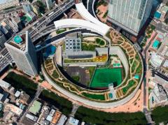 地下から地上に向けて、困難と言われた東京の大動脈の分合流を山岳土木技術を駆使して実現すると共に、いきいきとした子供たちの居場所スペースが地域の足元にトータルデザインとして着地している。ローマのコロッセオと同スケールの構造体は、緊急時には避難スペースを、天空では気持ちのいい東京の新しい視点場を生み出すことに成功、高さを変えるたび様々な機能と眺めが展開される新たな「東京のアーバンデザイン」といえよう。
