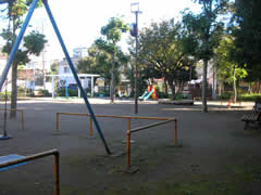 八幡公園は、山手通りから1本入った住宅街の中にあります。ブランコやすべり台などの遊具があります。
