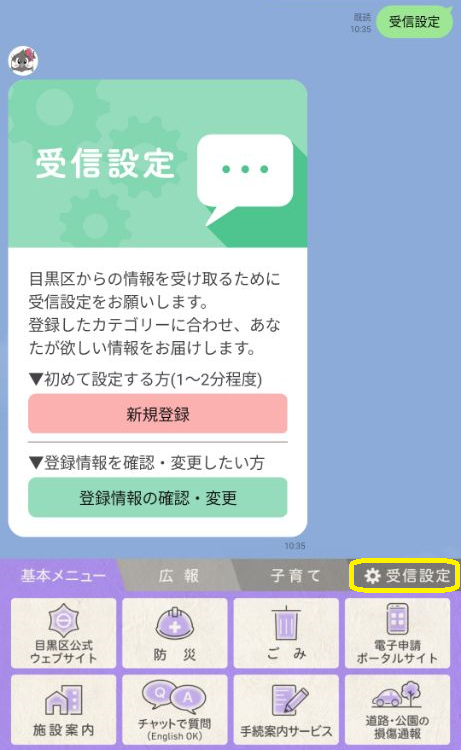 目黒区LINE公式アカウントの受信設定