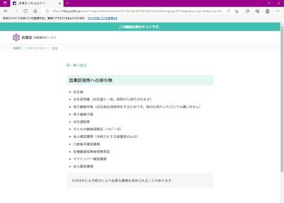 持ち物リストでは、全ての手続きに必要な持ち物が確認できます。