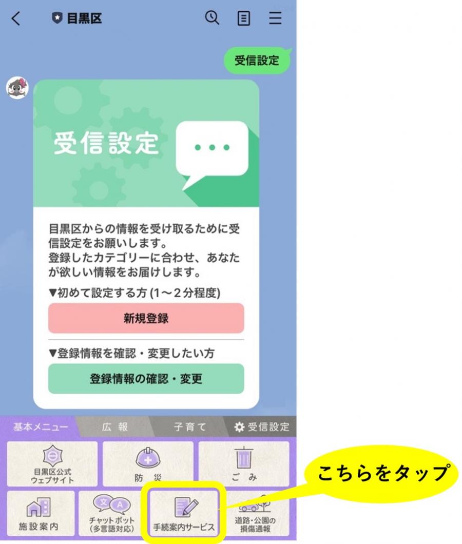 目黒区LINE公式アカウントからも手続案内サービスのサイトに入ることができます。