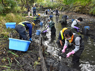 駒場野公園大池でかいぼりを本格実施 駒場野の森再生プロジェクト(令和2年11月8日)