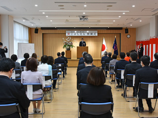 式の開会にあたり、関根陸雄(せきね みちお)社会福祉法人徳心会理事長は、「「こぶしえん」は、目黒区立第四中学校の跡地に竣工しました。正門にコブシの木があった目黒区立第四中学校の想いを継承する意味で、施設名称を「こぶしえん」としました。施設の中を貫く「プロムナード」を上手に使って、地域に開かれた施設を目指し、季節ごとの催事には、来客であふれる施設にしたいと思います。利用者のかたはもちろん、地域の皆さまに「徳心会でよかった」と言われる施設に育てていく所存です。」と挨拶しました。