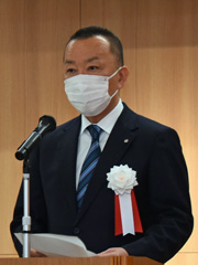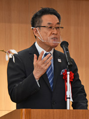 来賓として出席した青木英二目黒区長は、「この施設は、3つ素晴らしい点があると思います。一つ目は、大きな敷地の中に3種類の福祉施設があることで地域福祉が充実するという点です。平成30年3月に開設した障害者グループホーム「沙羅の家清水」、同じ年の4月に開設した認可保育所「ゆらりん下目黒保育園」、そして高齢者施設と障害者施設の複合施設である「こぶしえん」が連携して地域福祉を支えていただくことをうれしく思います。二つ目は、ハード面です。施設全体がとてもゆったりしたつくりとなっています。障害者のかたは、ご自分の居室からリフトを利用してトイレや浴室へ移動できるなど、みなさまにとって良好な生活空間を提供していただいています。三つ目は、地域に開かれている点です。施設内に、地域のみなさまが利用できる空間があることや、防災拠点となる防災備蓄倉庫を設置していただいていることなど、とても地域に開かれた施設となっています。施設名称にもある、コブシの花には「友愛」という花言葉があるそうです。「こぶしえん」が、花言葉のように愛に満ちて発展していくことを心から期待しています。」と挨拶しました。