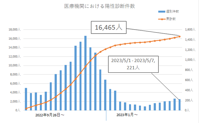 目黒区内の医療機関で新型コロナウイルス感染症と診断された件数(総数)は、5月1日から5月7日までの集計をもって終了しました。