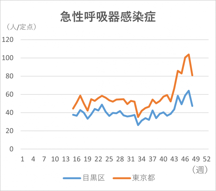 東京都全体でも、第48週(11月24日から11月30日)の患者報告数は35.76で、前週より減少しています。