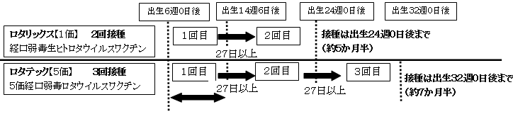 - ロタリックス(1価)(経口弱毒生ヒトロタウイルスワクチン)を使用する場合は、出生6週0日後から出生24週0日後までの間にあるかた