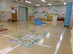 おもいきりからだを動かしてあそぶ部屋です。毎日、大勢の子ども達が、ボールあそび、卓球、一輪車、コマあそびなどをしてにぎわっています。また、午後4時30分から5時の間は、「みんなであそぼう」をおこない、毎日違うメニュー(ボールあそび、なわとび、おにごっこなど)のあそびをみんなで楽しみます。