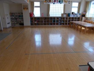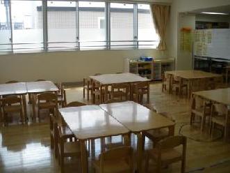 日当たりのよい明るい室内で、宿題や折り紙、工作などの静的な遊びをしたり、おやつを食べたりします。おやつの後やまとまった自由遊びの時間には机を移動して、ミニドッチボールやミニサッカーなどの動的な遊びができます。