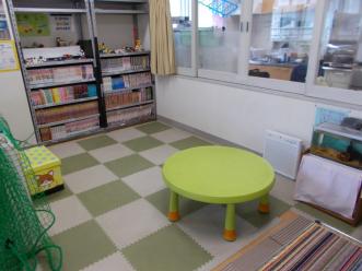 ゆったりと座って本を読んだり、トランプをしたり、レゴブロックなどができるコーナーです。