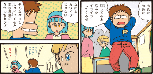 亮一 「そんなヤツとしゃべってると、変な言葉がうつっちまうゾ。ホレーワラスメホリシテー」