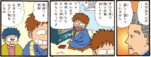 おばあちゃん 「おまえ、自分のしたことがその子をどんなに傷つけてるかわかるかい? おまえがしていることはね、いじめだし差別なんだよ」