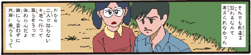 おばあちゃん 「それでも私たちは、別れるなんて考えられなかった。だから、二人で知らない土地へ行って暮らそうって決めたんだよ。誰にも言わずに汽車に乗ろうって」