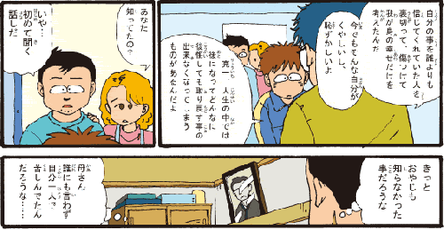 お父さん 「いや… 初めて聞く話だ。きっとおやじも知らなかったことだろうな。母さん、誰にも言わず自分一人で苦しんでたんだろうな…」