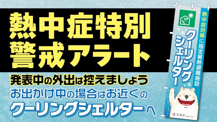 別警戒アラートが発表されたときは、暑さをしのげる場所として、冷房設備のある区の施設などをクーリングシェルター(指定暑熱避難施設)として開設します。