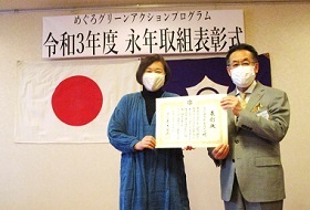 永年取組表彰とは、めぐろグリーンアクションプログラム(事業所版)に長年参加された事業所・団体に対して、長年にわたる功績を「永年取組表彰」として表彰するものです。