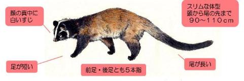 ハクビシン・アライグマは、毛の抜ける「疥癬(かいせん)」という皮膚病にかかっていることがあります。疥癬は人や飼い犬にも感染するおそれがあります。絶対に近づかないようにしてください。