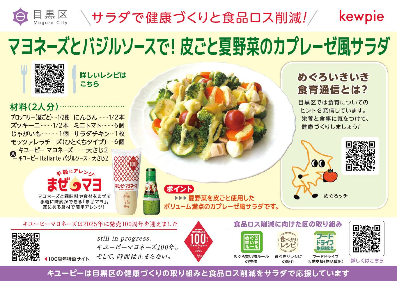 マヨネーズとバジルソースで!皮ごと夏野菜のカプレーゼ風サラダレシピカード(PNG:672KB)