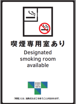 技術的基準を満たした指定たばこ専用喫煙室を設置した場合は、施設の主たる出入口の見やすい箇所と指定たばこ専用喫煙室の出入口に標識を掲示する義務があります。