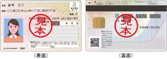 マイナンバーカードとは、プラスチック製のICカードで、表面に氏名、住所、生年月日、性別、本人の顔写真が表示され、裏面にマイナンバーが表示されているものです。