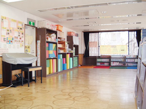 階段をのぼって2階にあるお部屋です。大型積木でお店やさんごっこをしたり、マンガを読んだり、みんなの「ホッ」とできる場所です。遊戯室の中には「乳幼児コーナー」もあり、保護者同伴で小さいお子さんも遊べます。