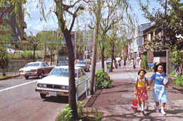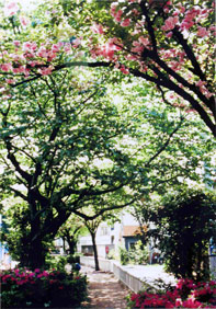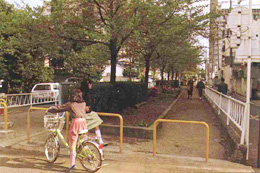 碑文谷三丁目の碑文谷八幡宮前から向原小学校を経て、品川区境の東急目黒線西小山駅まで1キロメートルにわたって立会川緑道が続いています。かつては小魚が泳ぎホタルが飛び交ったという立会川に、ふたがかけられ暗きょとなったのは昭和39年のことです。