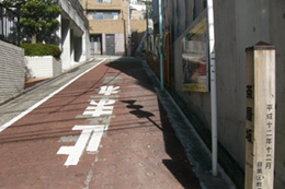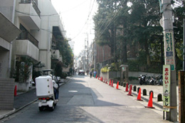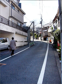かつては中根二丁目18番を西(立源寺裏)から東(呑川)に下る農道でしたが、昭和初期に行われた耕地整理によって廃道となり、現在は5,6メートル幅の道路で整然と区割りされた閑静な住宅地となっています。