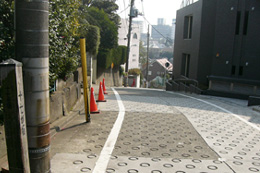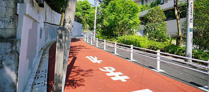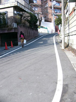 坂の途中で合流している茶屋坂に対して、昭和3年に開かれた新しい坂道ということで、新茶屋坂という名がつけられたとされています。かつての海軍技術研究所に沿って続く勾配の緩やかな長い坂道です。