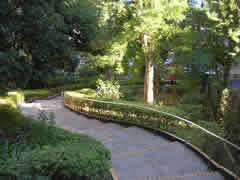 平成15年1月の目黒区の庁舎移転に伴い、同年3月に開園した庁舎前の公園です。駒沢通りに面していますが、木々に囲まれており穏やかな雰囲気です。