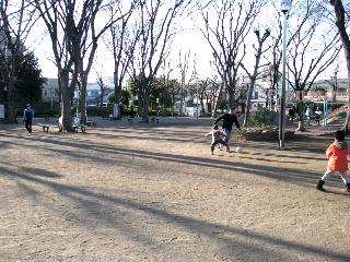 目黒川と蛇崩川が合流する場所で、河川敷を活用した広場です。