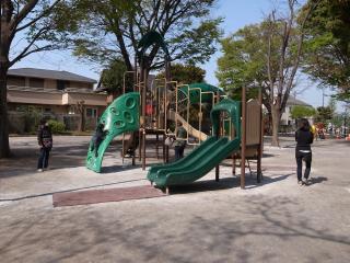 住宅街の中にあり、地元の人に親しまれている公園です。広い広場があり、広場から奥に入ったところに砂場と動物の遊具があります。