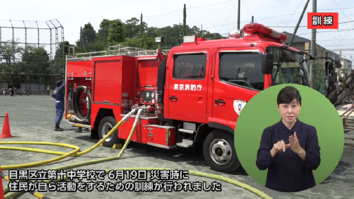 目黒区立第十(だいじゅう)中学校で、6月19日災害時に住民が自ら活動をするための訓練が行われました。