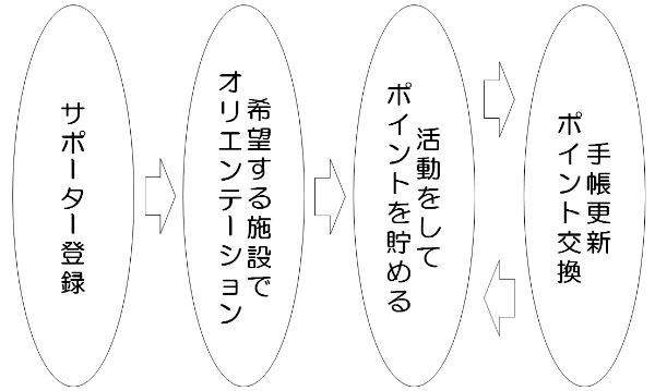 - 施設等で活動し、ポイント手帳にスタンプが押される。