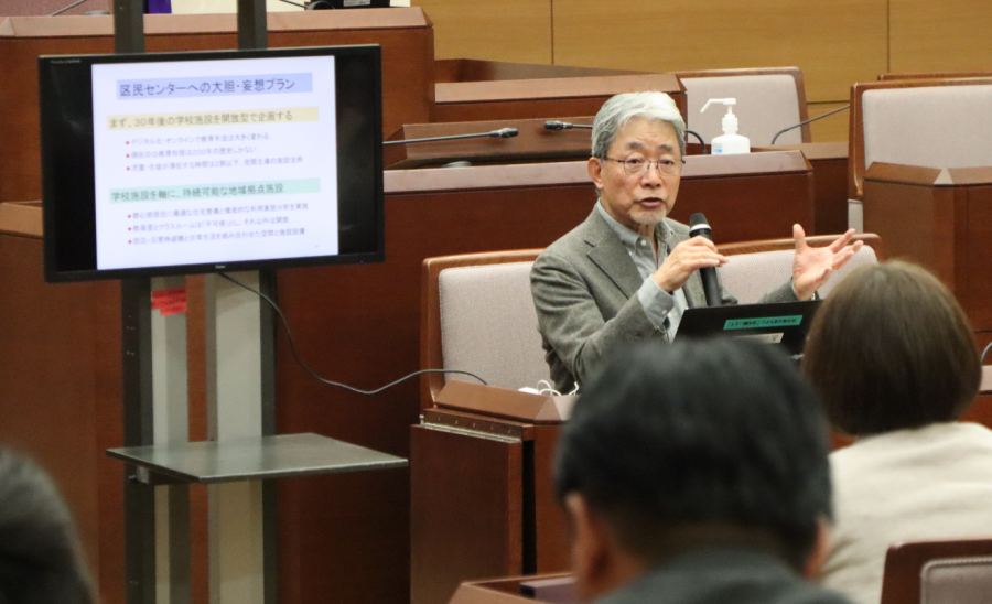 目黒区では、限られた財源の中で時代のニーズに即した 最適な施設サービスを提供していくために、目黒区区有施設見直し方針・計画を定めています。目黒区民センターをはじめとする区有施設の整備について、どのような手法で進めていくのがよいかを研究するため、令和7年2月14日に議員勉強会を開催しました。