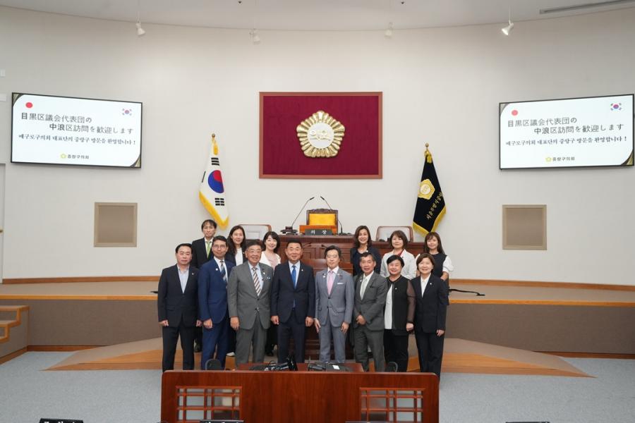 7月23日に韓国ソウル特別市中浪区議会議長からの招へいを受け、7月23日から24日の日程で、友好都市中浪区の議会を表敬訪問し、意見交換を行うとともに、24日には、目黒区・中国北京市東城区・中浪区の中学生が参加する「三区間交流事業」のスポーツ交流を視察しました。